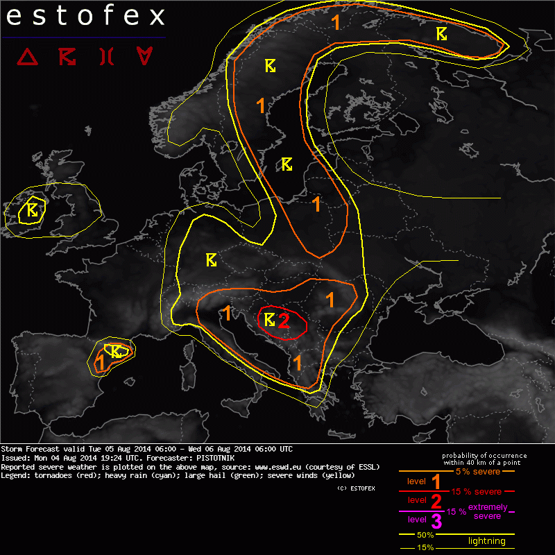 Die Großwetterlage entspannt sich zunehmend und die letzten Gewitter für die nächsten Tage werden sich schon recht früh entlang der Kaltfront bilden, dabei aber kaum noch unwetterartig ausfallen, meist eher harmlose Schauerzellen sein. Es existiert jedoch die Möglichkeit von längeranhaltendem Niederschlag über Sachsen-Anhalt, wo evtl. lokale Überschwemmungen durch Dauerregen möglich sind.
