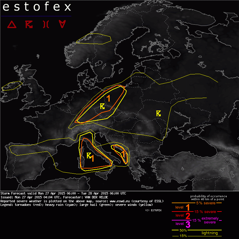 Starker Temperaturkontrast zwischen der Nordwest- und Südosthälfte wird begleitet durch ein Randtief VASCO, welches im Tagesverlauf entlang des Alpengebirges Richtung Osten zieht. Durch starke Warmluftzufuhr an der Vorderseite und reichlich Feuchteangebot ist ausreichend Instabilität gegeben, sodass einige stärkere Entwicklungen möglich sind.